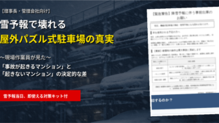 屋外パズル式の機械式駐車場は雪による誤作動で数百万円の修繕リスクがあります。現場歴10年のプロが、マンション理事や管理会社向けに雪の日のリアルな事故例と、降雪前の決定的な対策を解説。高額修繕やクレームを防ぐために今すぐ確認しましょう!